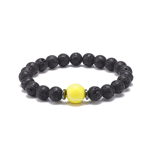 PandaHall Natural Lava Rock & Synthetic Hematite & Acrylic Beaded Stretch Bracelet, Essential Oil Gemstone Jewelry for Men Women, Basketball... Price: $13.9 | PandaHall