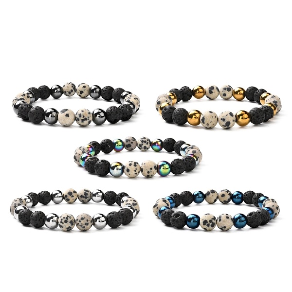 PandaHall Matte Stone Round Beads Stretch Bracelets for Men Women, Natural Dalmatian Jasper & Lava Rock & Non-magnetic Synthetic Hematite... Price: $19.68 | PandaHall