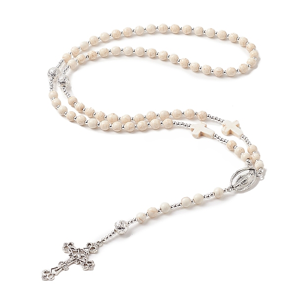 PandaHall Natural Lava Rock & Synthetic Turquoise Rosary Bead Necklace, Alloy Cross with Virgin Mary Pendant Necklace for Women, Antique... Price: $11.42 | PandaHall