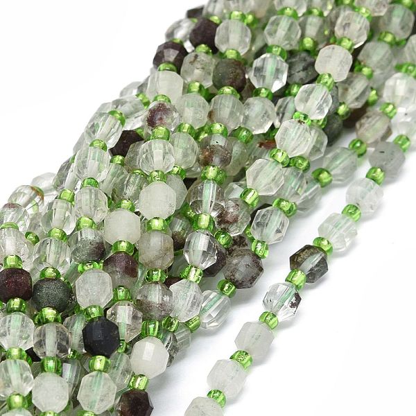 PandaHall Natural Green Lodolite Quartz/Garden Quartz/Green Phantom Quartz Beads Strands, with Seed Beads, Faceted, Bicone, Double... Price: $9.14 | PandaHall