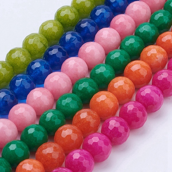 PandaHall Natural Malaysia Jade Bead Strands, Dyed, Faceted, Round, Mixed Color, 8mm, Hole: 1mm, about 46pcs/strand, 14.5 inch(36.83cm)... Price: $9.79 | PandaHall