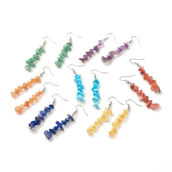 PandaHall 7Pcs 7 Style Natural & Synthetic Mixed Gemstone Chip Beaded Dangle Earrings with Glass, Brass Long Drop Earrings for Women... Price: $0 | PandaHall