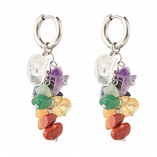 PandaHall Natural Mixed Gemstone Chip Beads Earring for Girl Women, 304 Stainless Steel Huggie Hoop Earrings, 50mm, Pin: 1mm Mixed Stone... Price: $0 | PandaHall