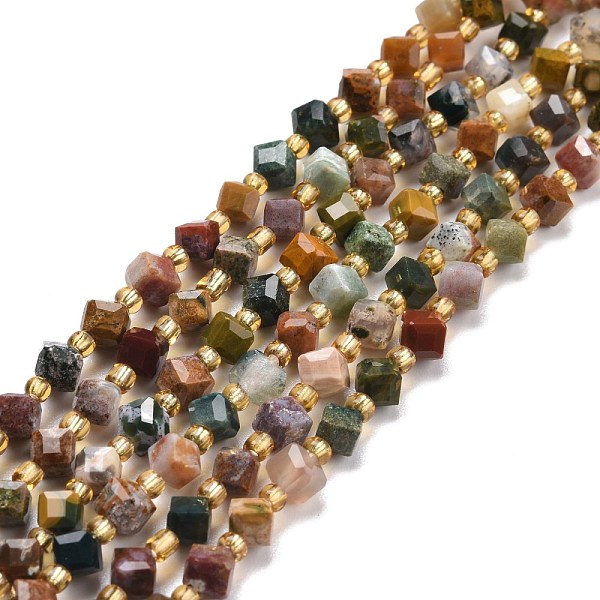PandaHall Natural Ocean Jasper Beads Strands, with Seed Beads, Faceted, Diagonal Cube Beads, 5~6x5~6x4~5mm, Hole: 1mm, about 49~55pcs/strand... Price: $11.88 | PandaHall
