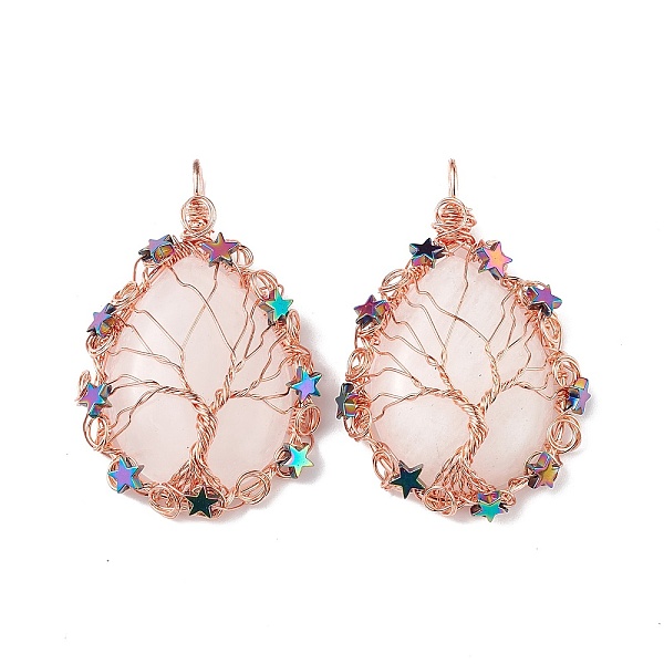 PandaHall Natural Rose Quartz Big Pendants, Teardrop Charms, with Rack Plating Rose Gold Plated Copper Wire Tree and Non-magnetic Hematite... Price: $11.75 | PandaHall