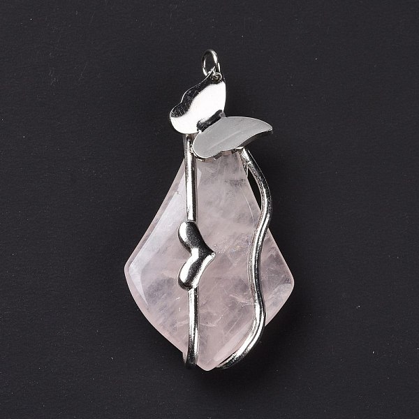 PandaHall Natural Rose Quartz Pendants, with Brass Findings, Flower with Diamond Shape, Platinum, 41.5x26x7.5~8mm, Hole: 5x7.5~8mm Rose... Price: $10.07 | PandaHall