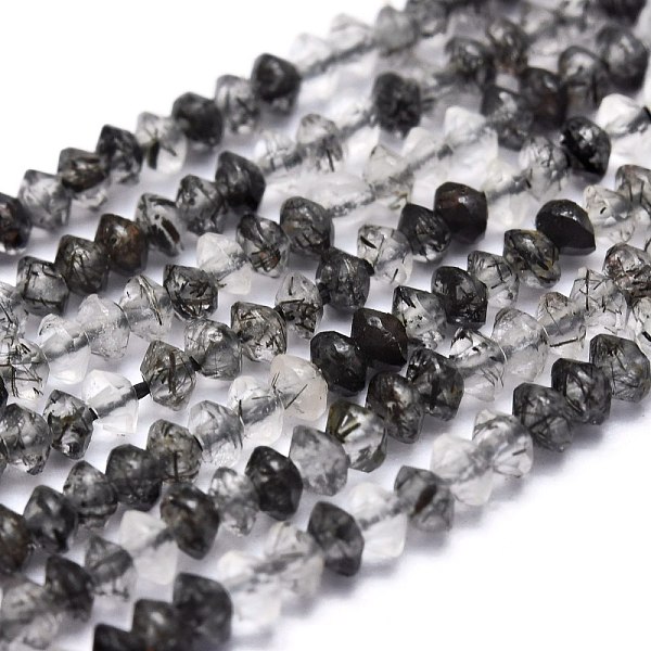 PandaHall Natural Black Rutilated Quartz Beads Strands, Faceted, Bicone, 2.5~3x1.5~2mm, Hole: 0.5mm, about 250pcs/Strand, 14.96 inch(38cm)... Price: $11.75 | PandaHall