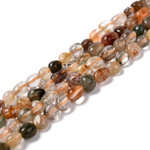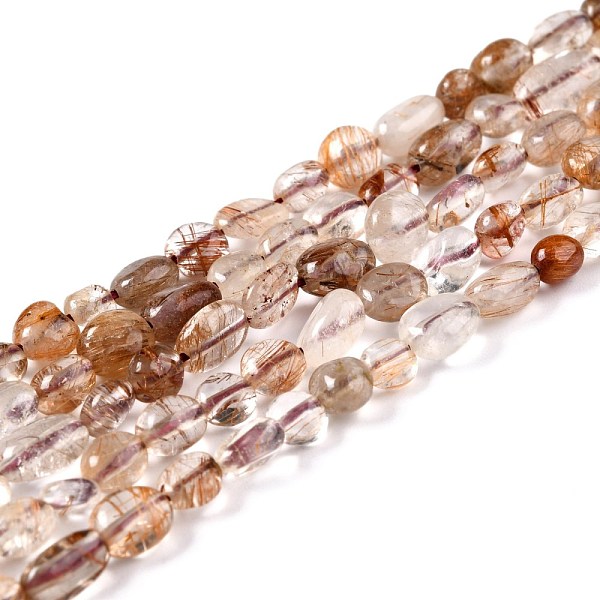 PandaHall Natural Rutilated Quartz Beads Strands, Nuggets, 6~10.5x6~7.5x4~5mm, Hole: 0.8mm, about 50~55pcs/strand, 15.94''(40.5cm) Rutilated... Price: $15.5 | PandaHall