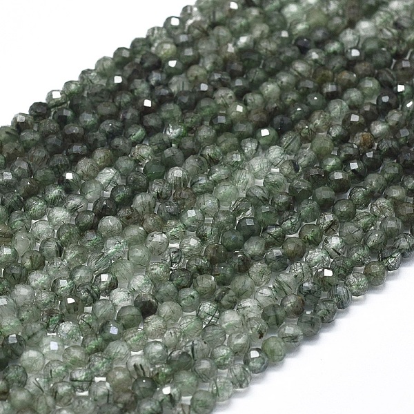 PandaHall Natural Black Rutilated Quartz Beads Strands, Faceted, Round, 3mm, Hole: 0.5mm, about 130pcs/strand, 15.3 inch(39cm) Rutilated... Price: $8.49 | PandaHall