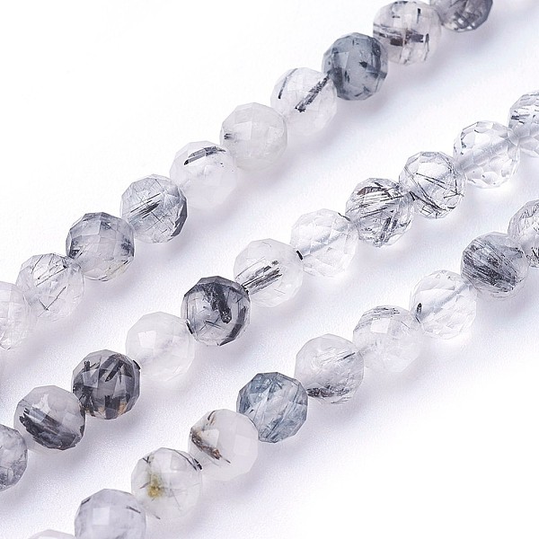 PandaHall Natural Black Rutilated Quartz Beads Strands, Round, Faceted, 4mm, Hole: 0.5mm, about 93pcs/strand, 15.5 inch(39.5cm) Rutilated... Price: $5.22 | PandaHall