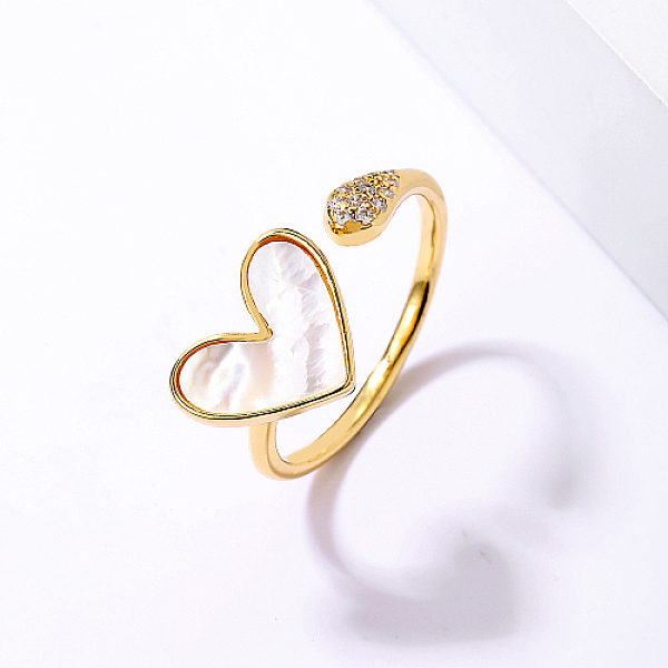 PandaHall Natural Shell Heart Open Cuff Ring with Clear Cubic Zirconia, Brass Jewelry for Women, Cadmium Free & Nickel Free & Lead Free... Price: $17.6 | PandaHall