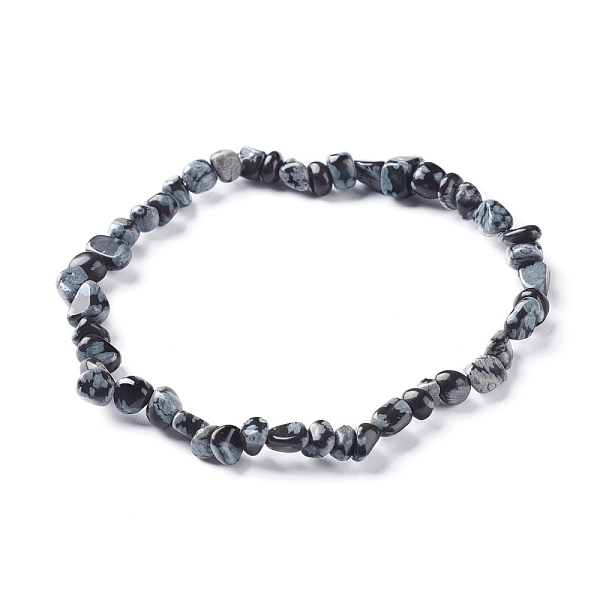 PandaHall Natural Snowflake Obsidian Chip Beads Bracelet for Girl Women, Stone Stretch Bracelet, Inner Diameter: 1-7/8~2-1/4 inch(4.9~5.8cm)... Price: $20.17 | PandaHall