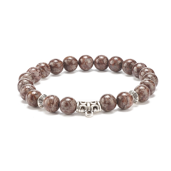 PandaHall Natural Snowflake Obsidian Stretch Bracelet with Alloy Beads, Gemstone Jewelry for Women, Inner Diameter: 2-1/4 inch(5.7cm)... Price: $15.31 | PandaHall