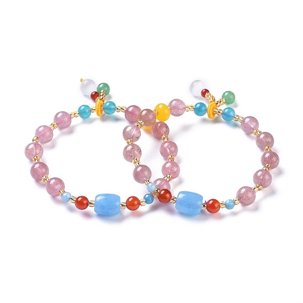 PandaHall Natural Strawberry Quartz Bracelets Sets, Slider Bracelets and Stretch Bracelets, with Brass Findings, Round, 2 inch(5cm), 8-5/8... Price: $5.93 | PandaHall
