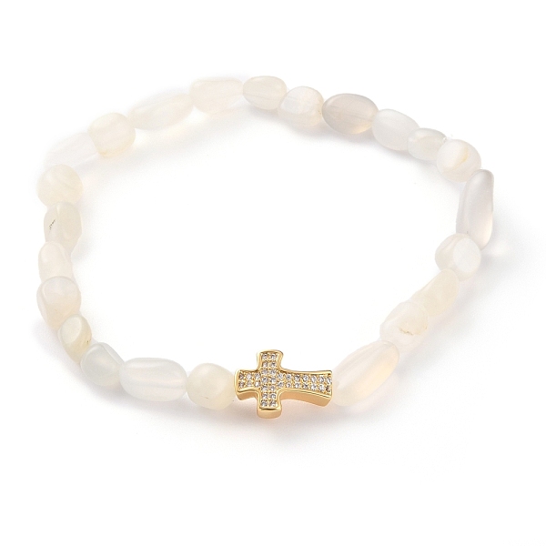PandaHall Nuggets Natural White Moonstone Stretch Beaded Bracelets, Tumbled Stone, with Brass Micro Pave Cubic Zirconia Cross Beads, Golden... Price: $15.12 | PandaHall