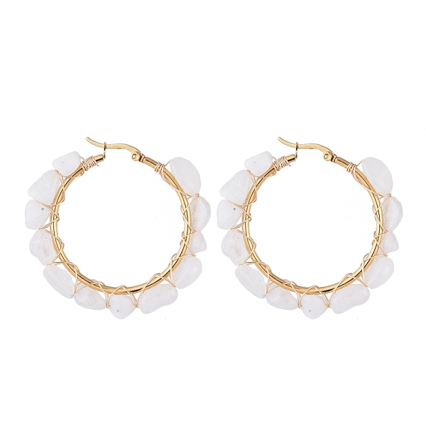 PandaHall 304 Stainless Steel Beaded Big Hoop Earrings, with Natural White Moonstone Beads, Ring, Golden, 48x5~6mm, Pin: 0.8x1mm White... Price: $24.16 | PandaHall