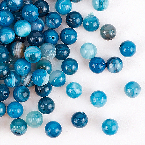 PandaHall Olycraft Natural Striped Agate/Banded Agate Beads Strands, Dyed, Round, Sky Blue, 8mm, Hole: 1mm, about 100pcs/box Banded Agate... Price: $5.99 | PandaHall