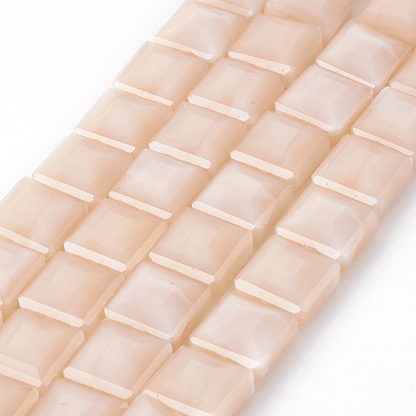 PandaHall Pearl Luster Plated Glass Bead Strands, Faceted Square, Bisque, 13x13x8mm, Hole: 1mm, about 27pcs/strand, 13.9 inch Glass Square... Price: $17.12 | PandaHall