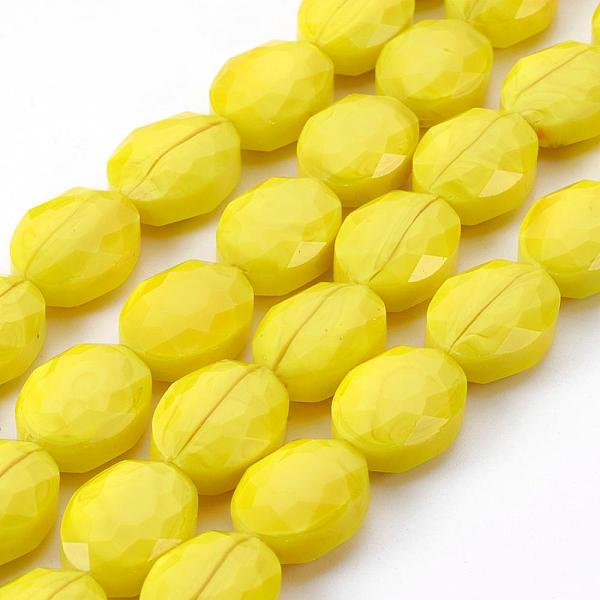 PandaHall Pearl Luster Plated Glass Bead Strands, Faceted Flat Round, Yellow, 14x7mm, Hole: 1mm, about 25pcs/strand, 13.7 inch Glass Flat... Price: $15.41 | PandaHall