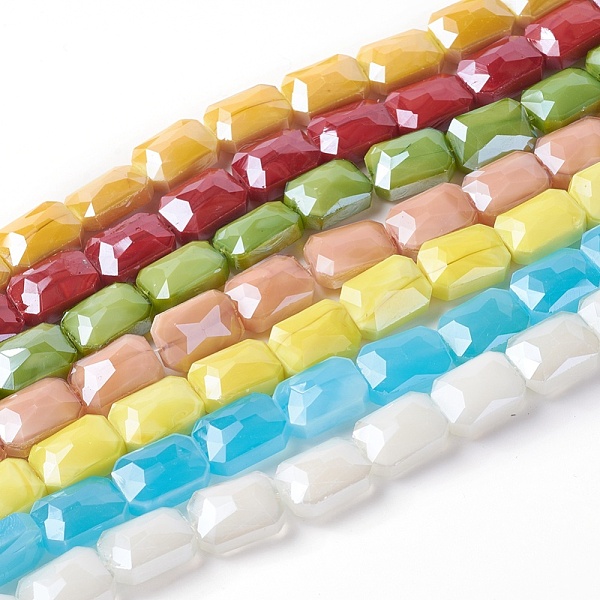 PandaHall Electroplate Glass Beads Strands, Pearl Luster Plated, Rectangle, Mixed Color, 9.5x6~6.5x3.5mm, Hole: 1mm, about 68pcs/strand... Price: $13.69 | PandaHall