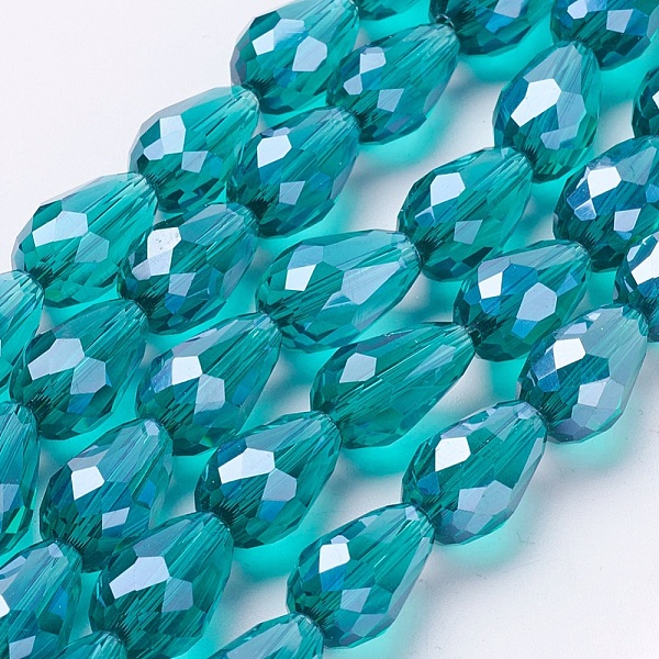 PandaHall Electroplate Glass Beads Strands, Pearl Luster Plated, Faceted, teardrop, Teal, 15x10mm, Hole: 2mm Glass Teardrop Cyan Price: $2.23 | PandaHall