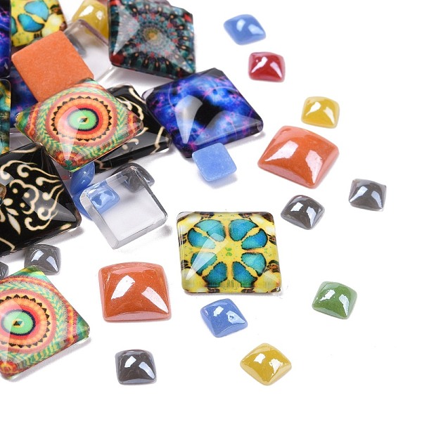 PandaHall Pearlized Plated Opaque Glass Cabochons, Square, Mixed Color, 4~10x4~10x2~4mm Glass Square Multicolor Price: $4.46 | PandaHall