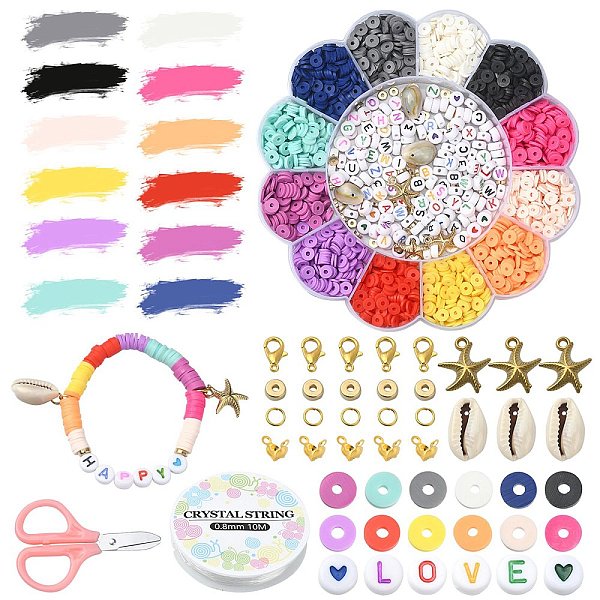 PandaHall DIY Bracelet Necklace Making Kit, Including Polymer Clay Disc & Acrylic Letter & Natural Shell Beads, Plastic Starfish Pendants... Price: $4.26 | PandaHall