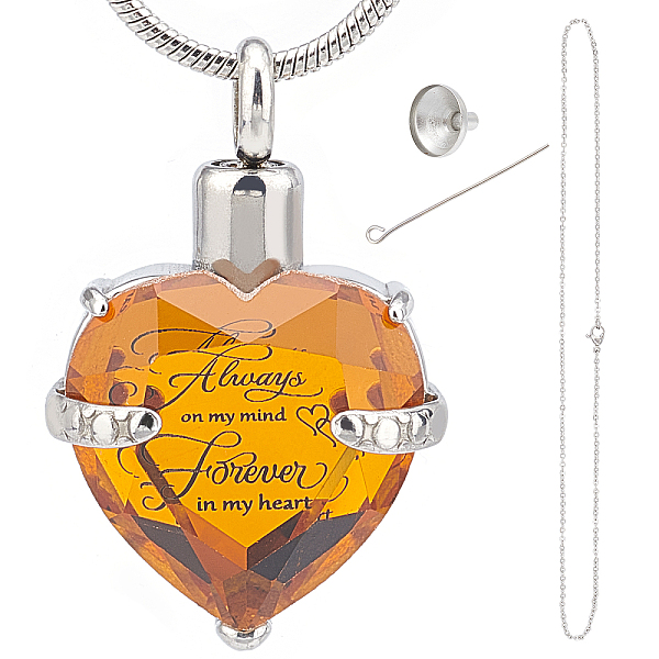PandaHall CREATCABIN October Glass Urn Pendant Necklace DIY Making Kit, Including 1Pc Heart Glass Urn Pendant with Always On My Mind Forever... Price: $6.09 | PandaHall