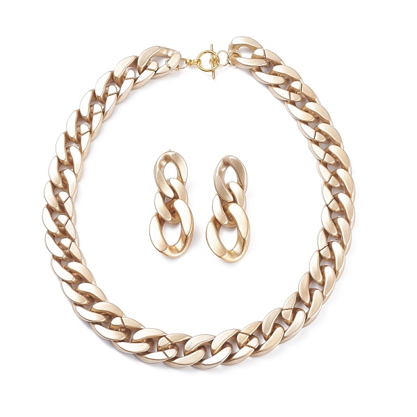 PandaHall CCB Plastic& Acrylic Curb Chain Necklace & Dangle Stud Earrings, Chunky Jewelry Set with Stainless Steel Pin for Women, Gold... Price: $21.13 | PandaHall