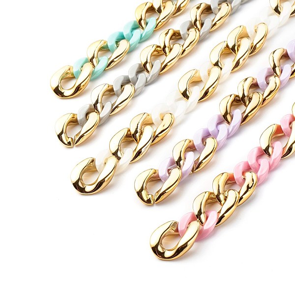 PandaHall Handmade Acrylic Curb Chains, Twisted Chain, Opaque, Spray Painted, with CCB Plastic Links, Oval, Golden, Mixed Color, link... Price: $15.07 | PandaHall