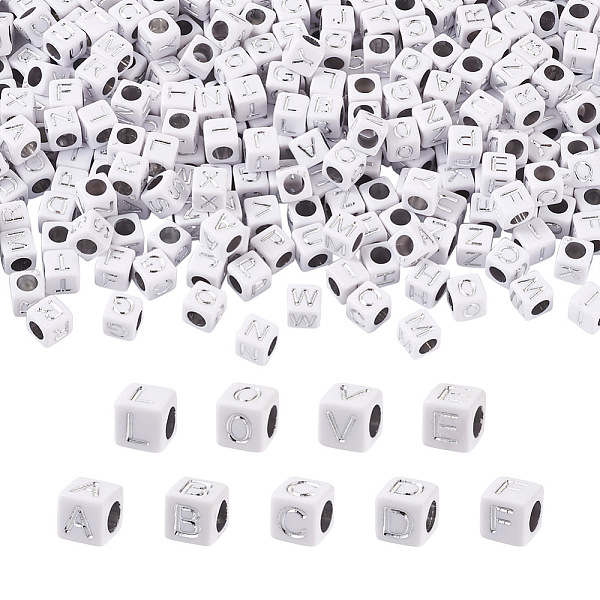 PandaHall Plating Acrylic Beads, Metal Enlaced, Cube with Mixed Letters, White, 5.5~6x5.5~6x5.5~6mm, Hole: 3.5mm, 1000pcs Acrylic Letter A~Z... Price: $4.34 | PandaHall