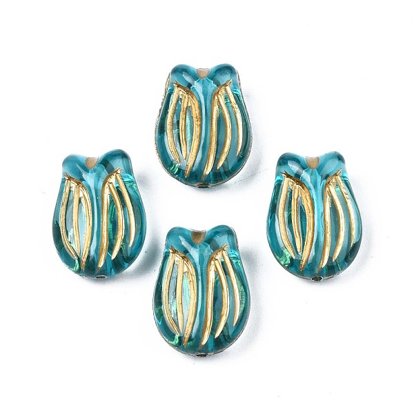 PandaHall Plating Opaque Acrylic Beads, Metal Enlaced, Tulip, Aquamarine, 16x11.5x7mm, Hole: 2mm, about 670pcs/500g Acrylic Flower Green Price: $15.47 | PandaHall