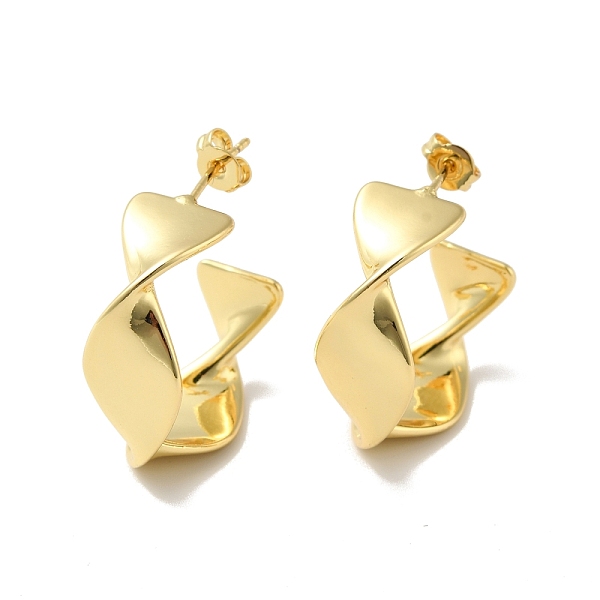 PandaHall Rack Plating Brass Twist Wrap Stud Earrings, Half Hoop Earrings for Women, Cadmium Free & Lead Free, Real 18K Gold Plated, 25x10mm... Price: $0 | PandaHall