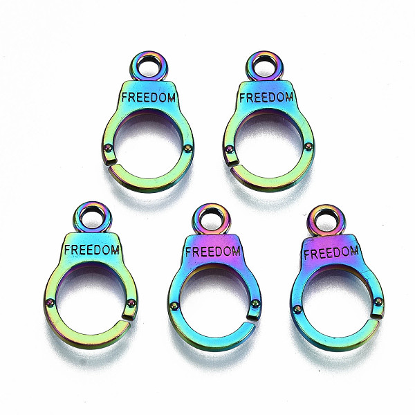 PandaHall Rainbow Color Alloy Pendants, Cadmium Free & Lead Free, Handcuffs with Word Freedom, 17x10x1.5mm, Hole: 2mm Alloy Others Price: $4.34 | PandaHall