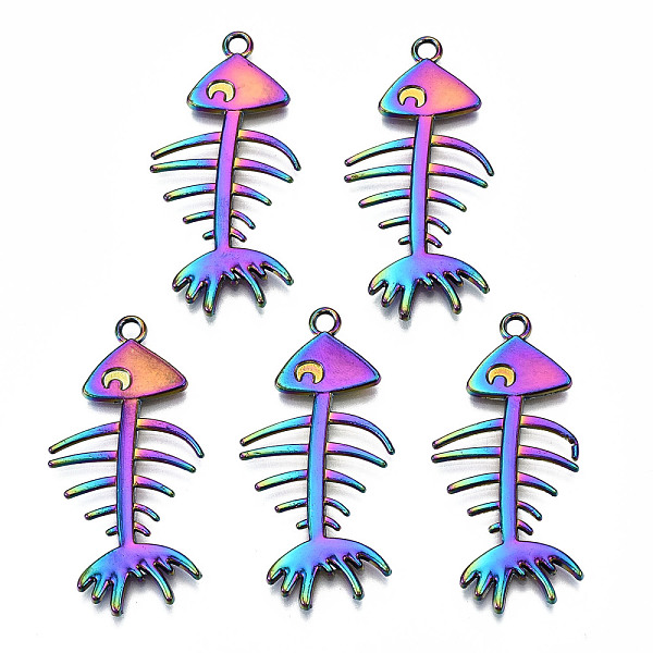 PandaHall Rainbow Color Alloy Pendants, Cadmium Free & Lead Free, Fishbone, 42x21x2mm, Hole: 2.5mm Alloy Others Price: $8.06 | PandaHall