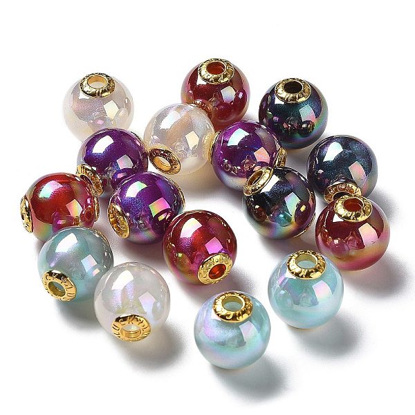 PandaHall Rainbow Iridescent Plating Acrylic European Beads, Glitter Beads, Large Hole Beads, with Golden Tone Alloy Findings, Round with... Price: $26.11 | PandaHall