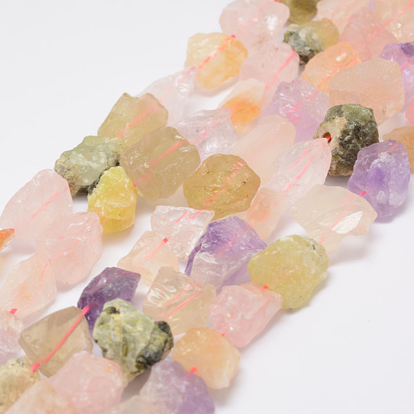 PandaHall Raw Rough Natural Mixed Gemstone Beads Strands, Prehnite & Rose Quartz & Amethyst & Quartz, Nuggets, 15~20x14~18x10~14mm, Hole... Price: $18.28 | PandaHall