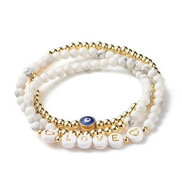 PandaHall Love Heart Evil Eye Stacking Stretch Bracelets Set for Girl Women, Natural Howlite Round Beads Bracelets, Golden, Inner Diameter... Price: $2.2 | PandaHall