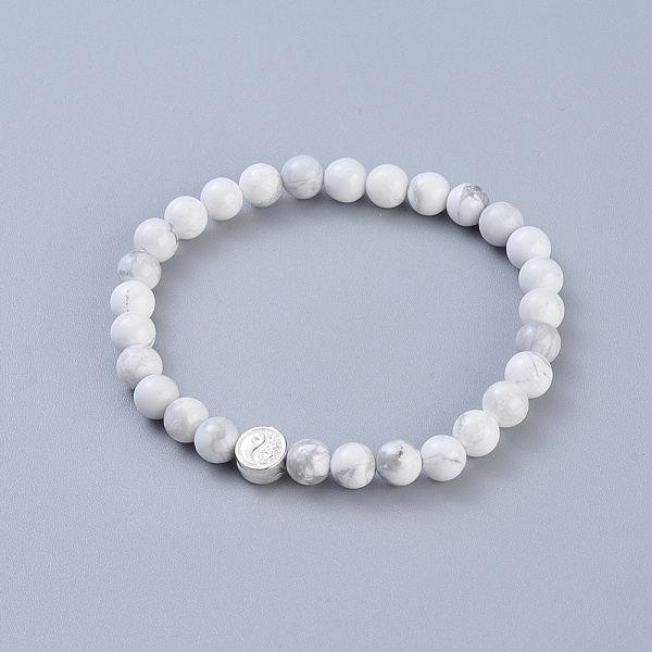 PandaHall Feng Shui Natural Howlite Beaded Stretch Bracelets, with 925 Sterling Silver Beads and Jewelry Box, Flat Round with Yin Yang... Price: $16.36 | PandaHall