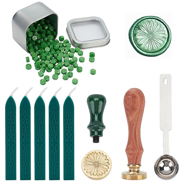 PandaHall Wax Seal Stamp Set, Including Sealing Wax Sticks, Pear Wood Handle, Sealing Wax Particles, Iron Wax Sticks Melting Spoon... Price: $6 | PandaHall