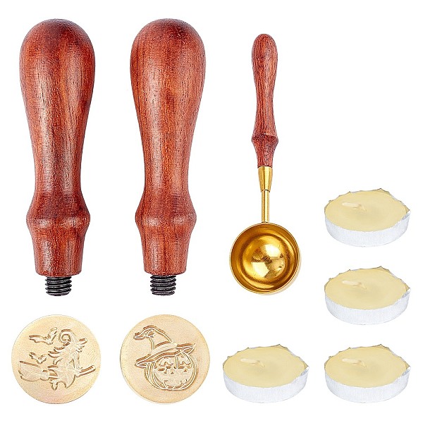 PandaHall CRASPIRE DIY Halloween Theme Letter Seal Kits, with Brass Wax Seal Stamp and Wood Handle Sets, Candle and Sealing Stamp Wax Spoons... Price: $9.7 | PandaHall