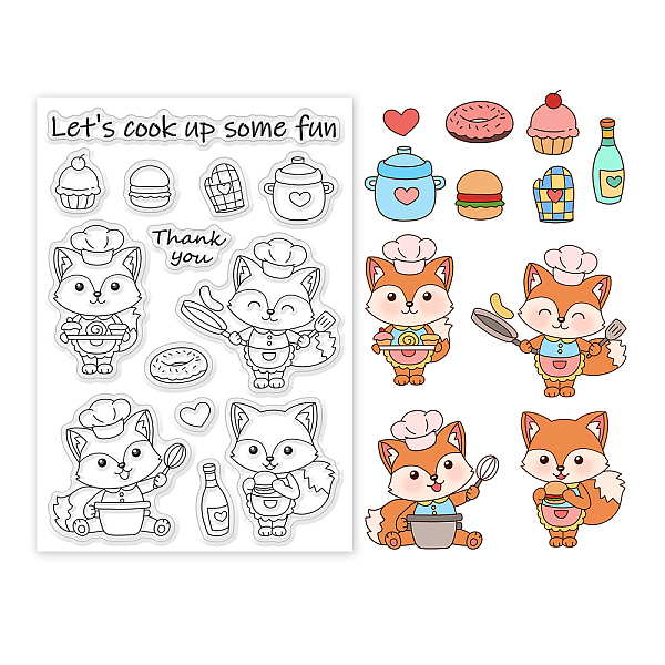 PandaHall BENECREAT Fox Cook Clear Stamps Kitchenware Condiment Food Donuts Burgers PVC Silicone Stamps for DIY Scrapbooking, Photo Album... Price: $5.24 | PandaHall