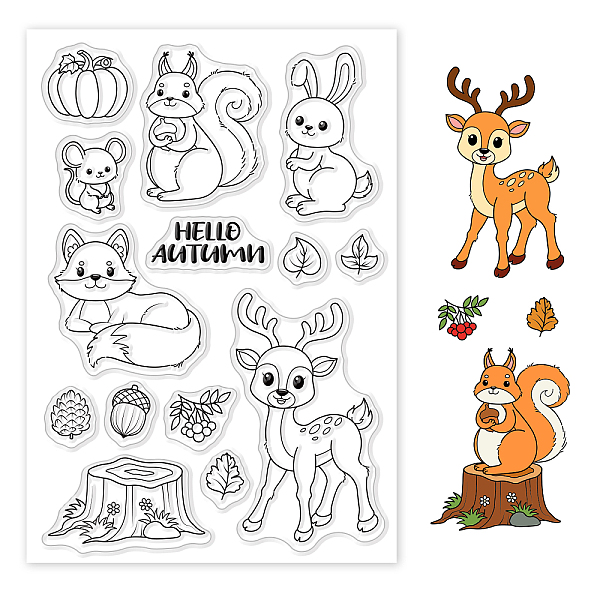 PandaHall GLOBLELAND Autumn Animals Clear Stamps Pumpkin Deer Fox Rabbit Silicone Clear Stamp Seals for Cards Making DIY Scrapbooking Photo... Price: $5.99 | PandaHall