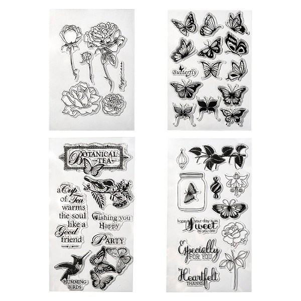 PandaHall 8 Sheets 4 Styles Clear Silicone Stamps, for DIY Scrapbooking, Photo Album Decorative, Cards Making, Bird & Flower & Leaf & Word... Price: $7.46 | PandaHall