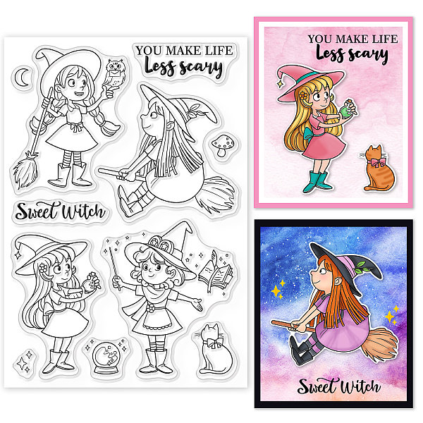 PandaHall GLOBLELAND Witch Day Clear Stamps for DIY Scrapbooking Elf Cats Brooms Silicone Clear Stamp Seals for Cards Making Photo Album... Price: $5.62 | PandaHall