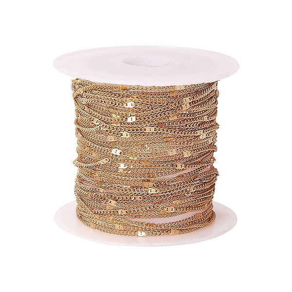 PandaHall Brass Coated Iron Cable Chains, Satellite Chains, with Brass Round Beads, Soldered, with Spool, Flat Oval, Light Gold... Price: $2.98 | PandaHall