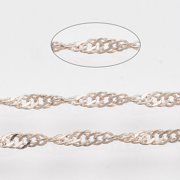 PandaHall Soldered Brass Coated Iron Singapore Chains, Water Wave Chains, with Spool, Rose Gold, 2.5x1.7x0.3mm, about 39.37 Feet(12m)/roll... Price: $2.58 | PandaHall