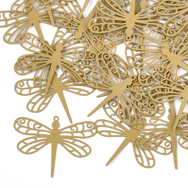 PandaHall 430 Stainless Steel Filigree Pendants, Spray Painted, Etched Metal Embellishments, Dragonfly, Goldenrod, 26.5x35x0.3mm, Hole... Price: $12.92 | PandaHall