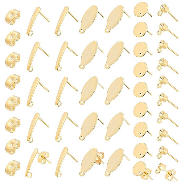 PandaHall PH 32pcs Golden Ear Studs Earring Posts Oval Round Ball Stud Earring 0.8mm Pin Stainless Steel Earring Components with Ear Nut... Price: $9.53 | PandaHall