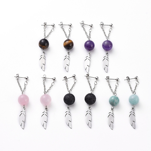 PandaHall Natural Mixed Gemstone Beads Dangle Ear Studs, with 304 Stainless Steel Ball Post & Pendants & Cable Chains & Ear Nuts, Wing, 68mm... Price: $30.59 | PandaHall